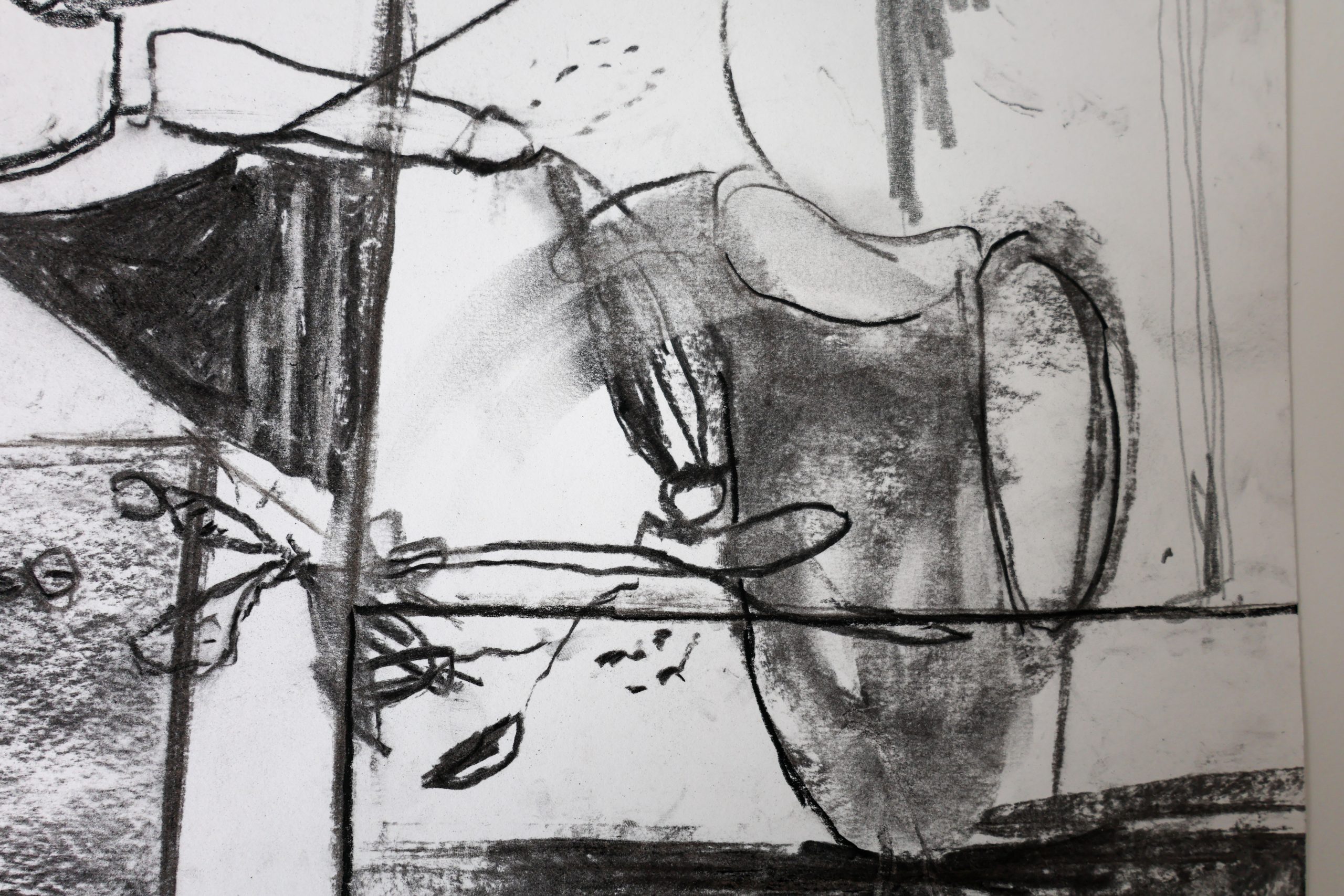 I make drawings, prints, paintings and small sculptural works based on everyday life at home, trees, tables, objects and fragments.