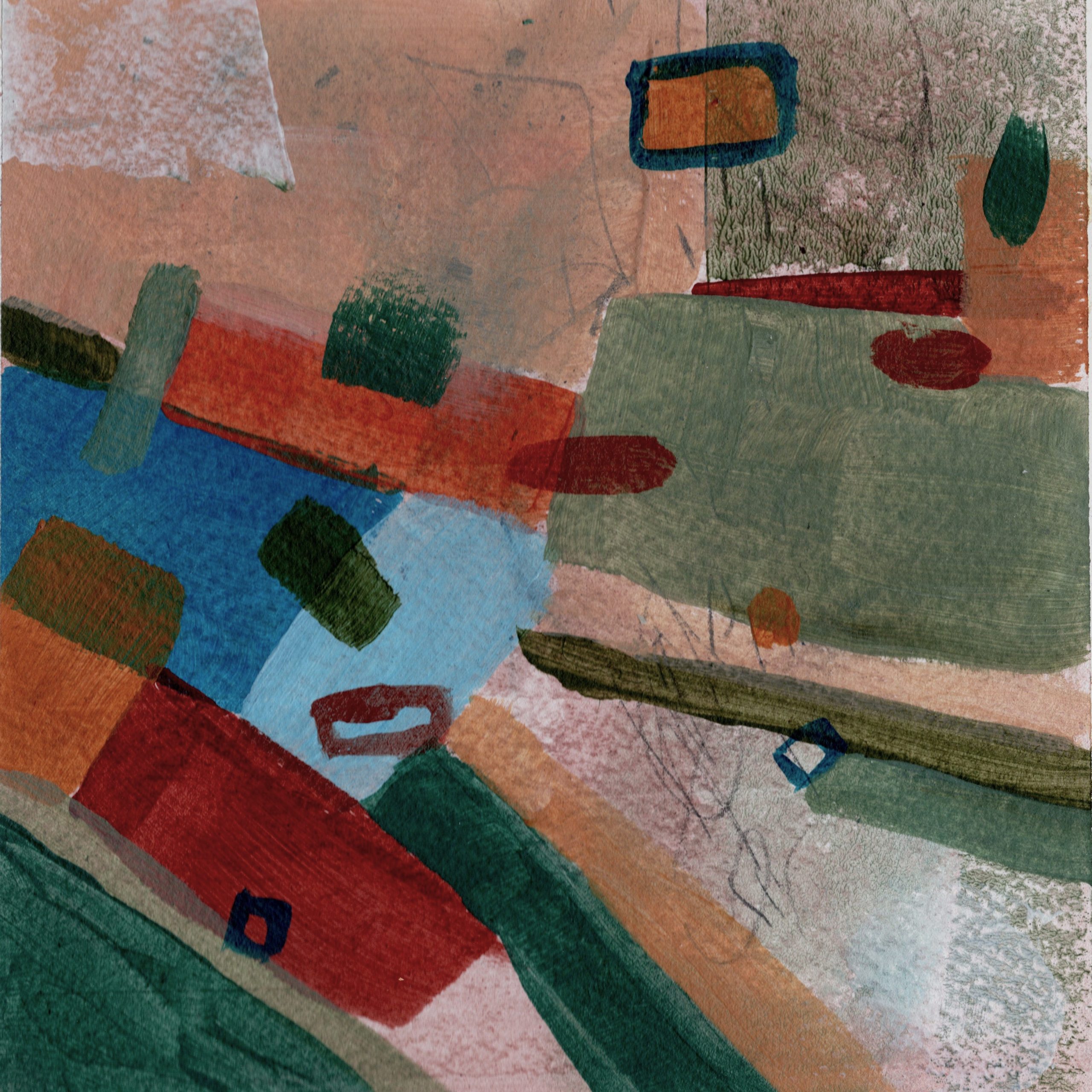 These begin as direct observations but often shift into something more playful or slightly off. Shapes wobble, overlap or become containers for patterns, marks and small imagined details.